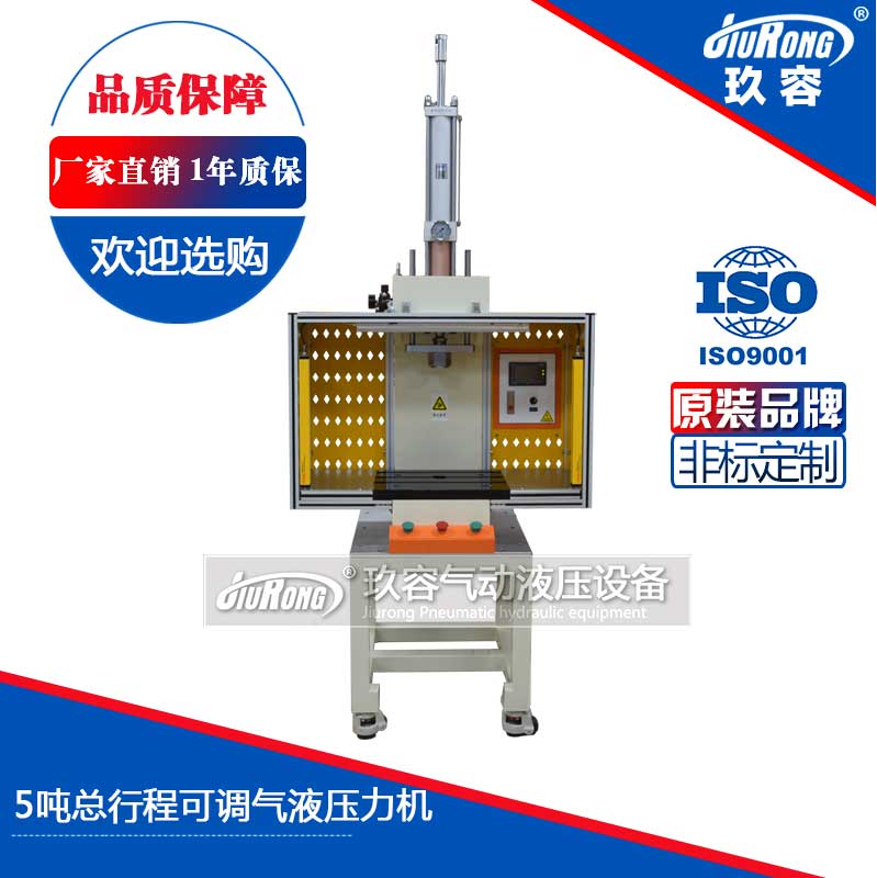 5T總行程可調(diào)氣液增壓機為非標定制設備,5噸出力的氣液壓力機產(chǎn)品。產(chǎn)品最大的特點是:總行程可調(diào)。設備采用JRC總行程可調(diào)氣液增壓缸作為氣動執(zhí)行元件,采用PLC控制,方便操作簡單方便舒適,可搭配1t、3t、5t、8t、10t氣液增壓缸使用。